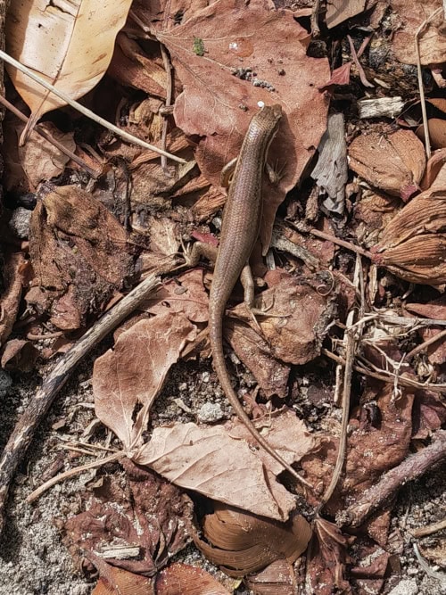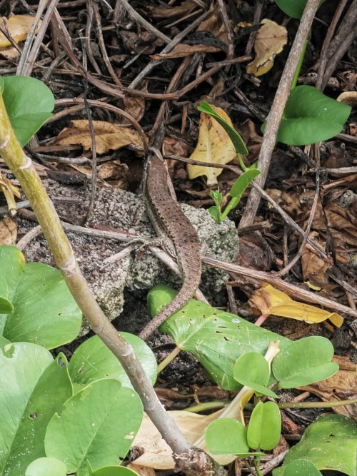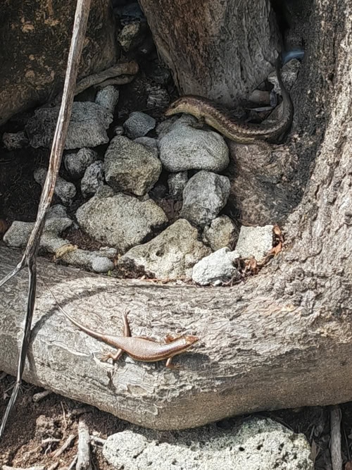 Nach wenigen Schritten entdeckten wir die ersten Echsen, die sich ohne Scheu sonnten.