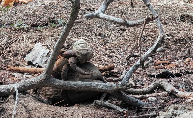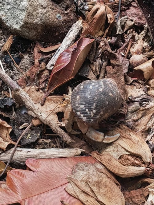 Immer wieder begegneten uns unzählige Einsiedlerkrebse, die ihr Schneckenhaus, welches sie bewohnten mit sich trugen.