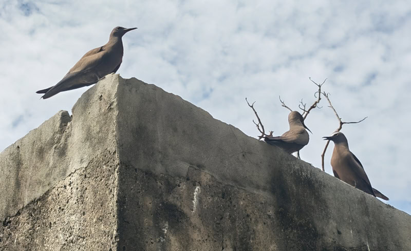 Wir gingen unter die Vogelbeobachter und uns zeigten sich ganze Scharen von Rußseeschwalben, Lesser Noddy. Die Rußseeschwalben sind Seevögel aus der Familie der Seeschwalben.