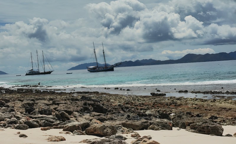 In der Ferne sahen wir unsere Sea Peral und die Sea Star von Silhouette Cruises, die auf unsere Rückkehr wartete.