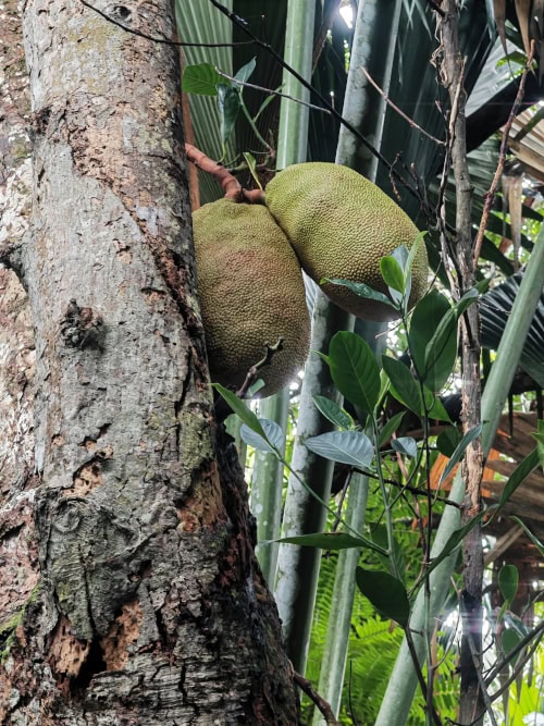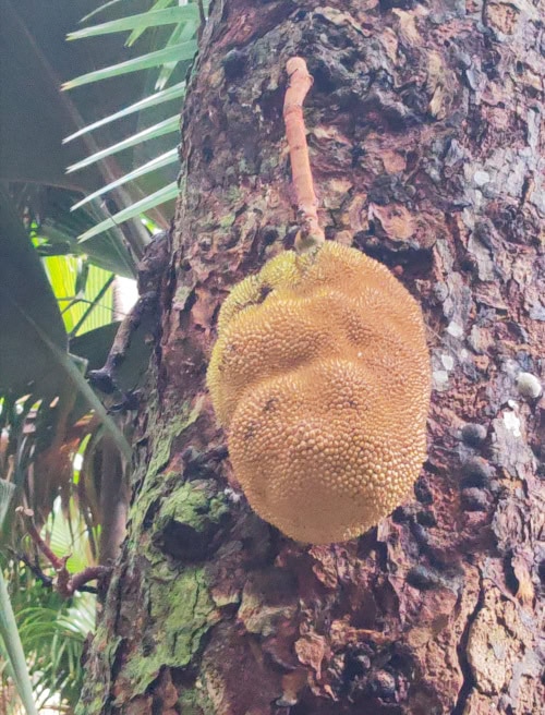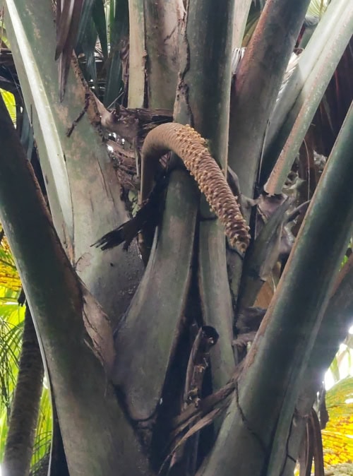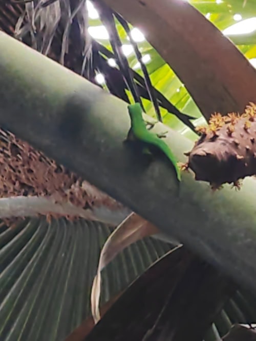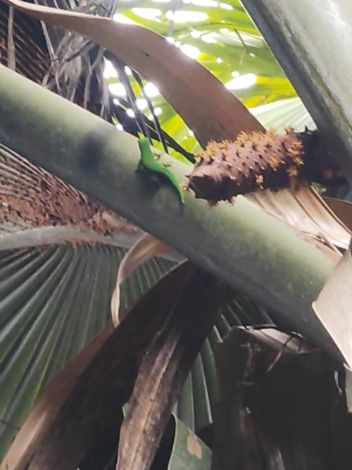 Die Befruchtung findet durch Eidechsen statt, die man immer wieder auf den Palmen entdecken kann.