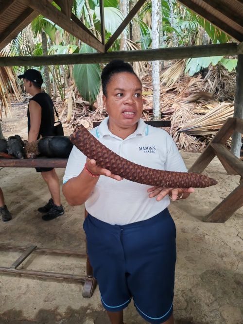 Kaum angekommen, erklärte uns die nette Reiseleiterin alles Wissenwerte über den “Urwald“ und die berühmte Coco de Mer, die hier in großen Mengen wächst.